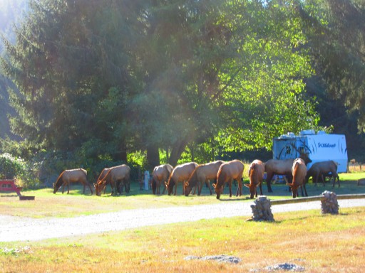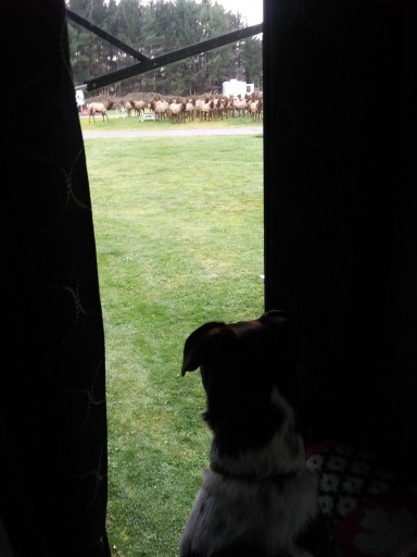 We stayed 2 nights in the meadow. There is plenty of space for creating a "front patio." We had our dog and had plenty of places to walk him. There's also a small lake tucked in the back forest area. (RV spaces were tighter in the forest, where all the tent camping was.) The elk showed up on the 2nd day and grazed in their meadow away from the campers. What a fantastic bonus!