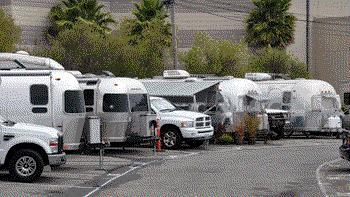 Dial “001” on the phone located to the left of the gate. Staff will open the gate. Drive slowly, straight ahead through the parking lot until you see the RV Dump sign next to the native plant nursery.