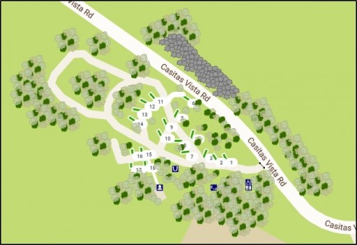 No showers, no water running through the creek. Nice concrete pad sites with full hookups at the Foster Residence Campground. Ventura and Ojai not that far away.