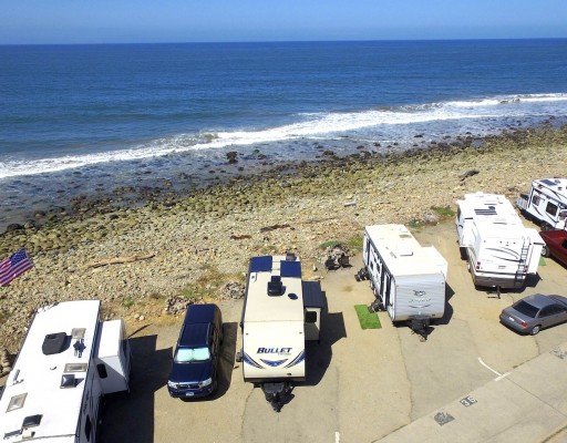 These sites are right next to the water. Beach is all rocks of different sizes. Seems every site has a fire pit built from the surrounding rocks. Seems quiet. However, there are train tracks across the road for the commuter trains. ( Maybe 5 trains a day with 5-10 cars. ) Doesn't seem to be an issue. PCH is up the hill. Road noise can be heard but are drowned out by the waves ebb and flow. Boon docking only, bring what you need. I would return.