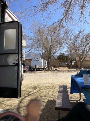 Desert views, nice straight sites, wide enough with picnic tables and fire rings. Great for kids with a tree house, a park and a mini water park! Lots of tent sites and small cabins. Did not use bathrooms so I can’t comment on cleanliness. Jackie is helpful and nice. Small store