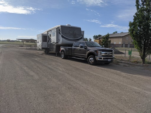 A very nice pit stop, site 12 level with very good electrical outlets. No one at site, but follow the instructions at entrance. The have a payment kiosk for processing 25 per nite fee. Has rest room and dump stations.