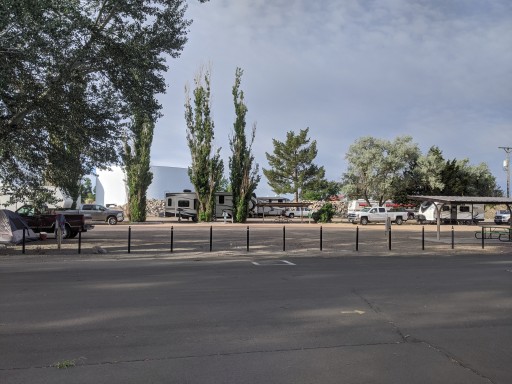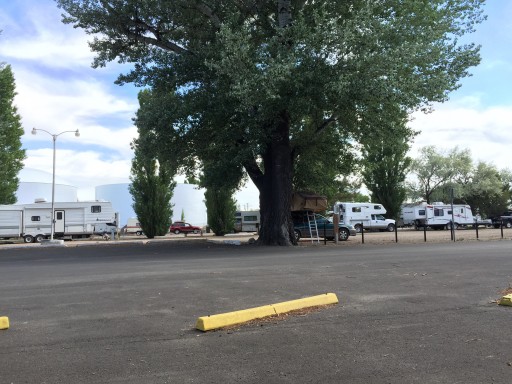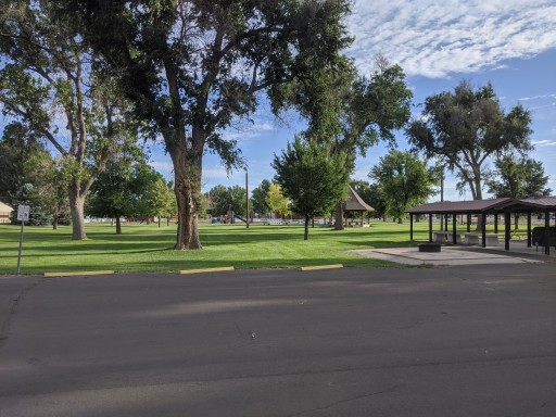Great overnight camping spot. Next to the City park which is large and beautiful. All kinds of playground equipment for the kids. A pool, nice shade trees, and big group cooking areas.