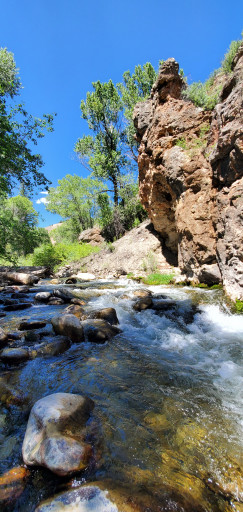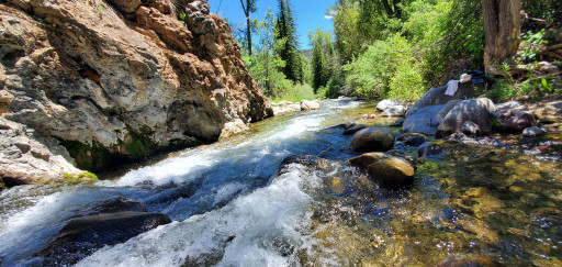 FREE! Very nice recreation area right next to the creek. It is large enought for our 30tt + a tow vehicle. Very cool, have your own private creek front to cool off during 95° in mid July, but dropped to 43° at night. Great solar area, no cell signal even with booster.