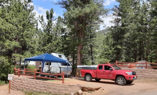 We stayed for 2 nights and had a great stay. The park is very well ran with friendly staff and our space was labeled with our name awaiting our arrival. Check in and set up was a breeze (even with a back-in space), and the camp itself has a nice store and is on the route for the local free shuttle to downtown Estes Park and RMNP which was extremely convenient. The park has great views of the mountains and has tons of wildlife (we had a herd of elk hang out right in front of our campsite one evening). The only negative would be that the sites are somewhat close together for the back in spaces, but other than that we would definitely come back.
