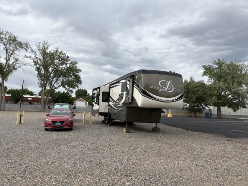 Moose lodge 270 in Grand Junction, Colorado. Suggested donation is $20 a night. The entrance’s are narrow. Looking at the satellite image do not enter the gate on the right side (green X). Very low hanging limbs & branches. Enter on the left side (red arrow). The yellow line is where the power posts are. Nothing but 20amp plugs on both sides. They could have up to 10 rigs if parked correctly. Not sure if their electric could handle it. I was pulling 15amp and the volts were 109-110 volts. There is a water spigot and dump station at the back of the lodge (see the purple arrow). In my spot I also picked up 5 large handfuls of broken glass. I did not check the other spaces. I was able to level with my right wheels off the ground. Very close to shopping.