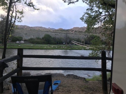 Spectacular little clean, tidy, well groomed park, under the shade trees literally on the shore of the Arkansas River. Gravel roads (no dust) with level gravel pads and each has a concrete patio and picnic table. Full hookups and free WiFi. Across the river from Hwy 50 so there is no road noise, but it is easily accessible. Roadways are wide and easily navigable, even for our 55' of Class A with tow. A gem of a spot, for a restful night, or for several days of relaxing, with the views of surrounding mountains and the rush of the river lulling you into lots of naps. Would we return? In a heartbeat!