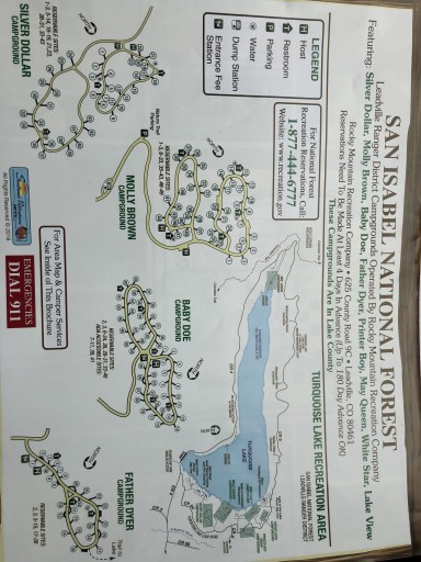 The campground is about 4 miles outside of town. The sites are picturesque, tree-covered and walkable to Turquoise Lake. The bathrooms are vault toilets with no running water. Although the campsite is at 10,000 feet, there were mosquitoes so make sure to bring your bug spray. If you have an RV, the sites are not level.