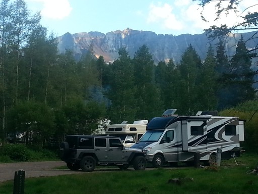 $32 for full hook-ups. Less with senior discount. Grest campground, great hosts, clean showes. Close to Tellride snd other sited. Take your bug spray snd fly repellant