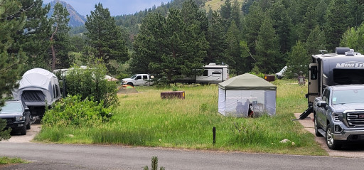 Fairly nice CG. Wide variety of sites...some tent only, some small rvs, some big enough for bigger rvs, Loop B no generators, Loop A & C generators are allowed, some sites shady, some in full sun for solar. All sites are pretty large with fire ring and picnic table. Flush toilets, no showers, community sink for washing dishes. Took lots of Leggos to level our rig. Only 1 or 2 pull through sites, but they were no more than just a wide area in the road and your slide out extends into the road. Back in sites are much better. Bear proof food storage bins ... and bears came through the camp each night we were there. $30, half price with senior pass. We had mice get into our rig on a couple of nights. We learned, years ago, to always set a couple of mouse traps inside. The grasses around the sites are pretty long and can hide lots of smaller critters like mice and snakes. Each loop has one water spigot to fill containers, no refill rv tanks. No cell signal even with booster.