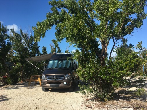 Popular as it’s surrounded by gulf and the Atlantic and close to Key West. We got lucky online due to a cancellation otherwise difficult to get in. Must plan ahead. A bus takes you both north into Key West and also south but lots of stopping so long ride. Great beaches. Part of park still closed for repairs due to Hurricane Irma so Sandspur area temporarily closed which means 24 fewer sites. Added fees costs almost $50 a night to camp but it’s relatively low for this area. Can walk out on old bridge; great sunset views and perfect spot for stargazing. Some sites are right at waters edge. Concession stand, marina, boathouse and swimming areas.
