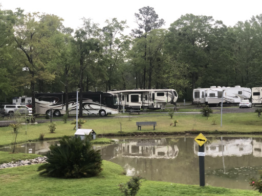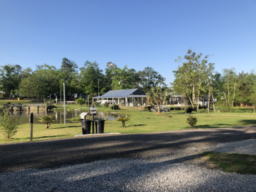 Right off I-10, easy to navigate on the gravel roads. Manager is Richard, very personable. There is an on-site restaurant that is very nice. I had a New York strip steak that was excellent. They serve bottled beer, 2 for 1 on Saturday. Restaurant is very clean, service is excellent. They have a fishing pond with catch and release fishing. We stayed in a travel trailer but there were large classes MH and 5th wheels. Plenty of room. We will stay here again is coming this way.