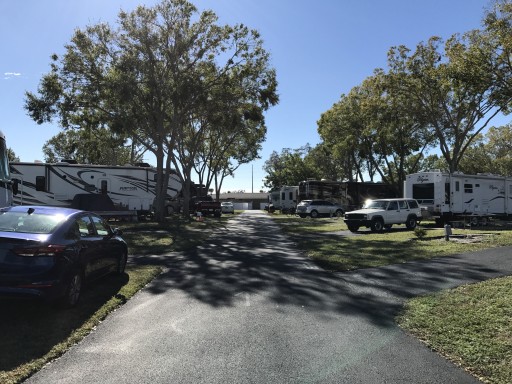 We wanted to stay in Sarasota for a few days but the local county park doesn't allow pets so we opted for this RV park. It is a 55+ community with many manufactured homes and many large RV's that are there all winter but anyone can stay a few nights with a trailer and the place is immaculate and everyone was super friendly. Bathrooms, pool, hot tub, laundry, game room and book library were immaculate. Not major private spots but really quiet and good for a few days. If you reserve by phone make sure you get the gate code to get in if coming in after 5pm. They also have manatees often in the cove of their private little island.