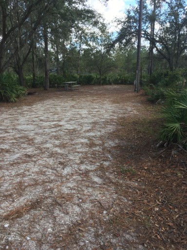 This is a well run park with friendly staff and equally friendly patrons. Online booking is the norm for FL state parks but we were accommodated on an extra site due to a reservation in the middle of our stay at our site. Call the park if this happens to you and they will be happy to help. It was a bit low and tight for our 38' class A and we rubbed the trees a bit in and out and experienced some unpleasant listing into the site due to a steep transition from the pavement to the sand and shell site, but not enough to cause damage. Dump was easily navigated and not crowded. 30amp, no full hook-ups, and 22/night. We enjoyed it overall.
