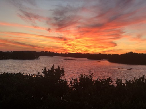 If you like unusual, if you are more interested in out of the ordinary and getting to know about the local you are visiting this is the place for you. It is on the main road coming into Cedar Key, traffic till late into the night. So if you’re a light sleeper, maybe not for you. Tiki bar on site, bartenders are great, good recommendations on what to do and see in Cedar Key. Owners are around to interact with, interested in making sure you are well taken care of. Sites are pretty basic. Sunset without having to leave your RV, and sunrise views within a few 100 feet (across the street standing on gravel by a bridge). If you want exercise, you can walk into town, most people drive. There’s a small pier and platforms near the sites. Very out of the ordinary, glued together with wine bottles, superhero figurines and hubcaps kind of place.
