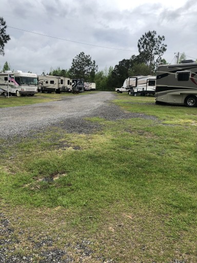 Now remind your self that this park was totally destroyed by Hurricane Michael. The owner and brother had been busting them selfs to get it back up and what a greater job. This place is just awsome in my opinion. Althought no showers but i dont care i use my Motorhome bath. They have this place cleaned and still doing repairs. It does sit back to I -10 but that was ok as i sat around a camp fire watching traffic. If you love the camping atomsphere this place is great. 30/50 amp,watet and sewer, nice size lots,big rig friendly, owners are awsome folks.only 40 min from beaches....cant day enough...if every through herr again ill stop and syay awhile.