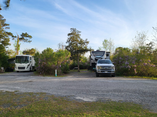 This park was apparantly destroyed by the hurricane. They have worked hard to bring it back to life. Vonda is so friendly and really rolled out the red carpet. The park is small and backs-up to the freeway, but the spots are pull-thru and more than amply sized to accommodate big rigs. We tow a 42 footer and had no problems getting into a spot. VERY reasonably priced! Full hook-ups, level graveled spots, and a fenced dog area. We stopped just for the night on our way through, but we would definitely stay here again and wish we had more time to park here for awhile on this trip.