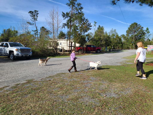 My wife and I were having a bad weekend, dog developed a bladder infection, marital stresses, Labor day idiots, etc. We made reservations at the Hitching Post to be centrally located between Dothan, Tallahassee and Panama City. Planned on going all these places but ended up staying at the park. Vonda is awesome and the park is quiet and relaxing even being close to the I-10. Highly recommend. It doesn't have all the amenities of some but it doesn't have all the annoying people either. The sites are mostly pull-throughs, level with excellent hook ups. Each spot has a table and chairs. As many have mentioned there are two fenced in dog areas so your furbabies can run around off leash. Poopie stations are everywhere for cleanups while walking. Very pet friendly for good dogs. Will be back.