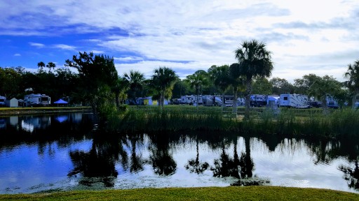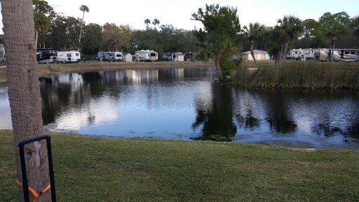 Loved the campground. The location with the canal for boat access, the pool, the ice cream stand, the playground and lake all made it the best Encore campground we have stayed at yet. Folks were friendly. We didn't meet any staff as we rolled in after hours Friday just for the weekend and we didn't need any help. The only downside is that using a free passes given to us either purchase of trailer appears to always me we get allocated the less desirable site. We were off in a corner by ourselves, by the dumpsters and where folks bring their dogs to do their business (not everyone picked up, not the campground's fault). May want to consider allocating a better site if you're wanting us to buy a pass after the free nights end. I don't mean premium but not the least desired.