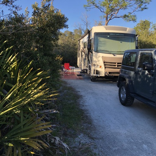 Our very first RV trip ever. We desided to take a short trip (40min drive) just to see what its all about. The park is great, spacious sites with all hookups, fire ring and BBQ grill. Nicelly trimmed, secluded. Access to Rainbow river with kayak and tube rentals, trail, activity center with pool table and kids play ground.