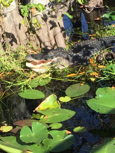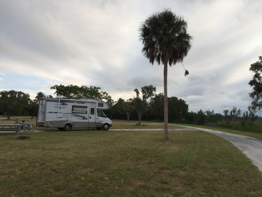 Trailer loop is a large well organised campground area with big pull-thrus and power to most sites. Choose a site and fill in the registration and take it back to the unmanned booth slot pedestal with your cash all the while trying to escape from the mosquitoes. Other loops had not a camper when we were there in early December. There is potable water available, restrooms and a dump station oh and hungry hoardes of mosquitoes that could put a lot of people off staying longer than necessary. There was a lot of water about this winter so less animals to be seen, but we saw 4 alligators and a few birds and a turtle from the main trails and an egret or two from the road in.