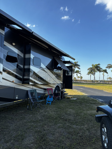 We happened upon this rv park while staying at the KOA in Fort Pierce and left there to go here. This place has huge level clean sites that are pull through. Perfect for big rigs. They only have a 10 sites which I am sure are full on the weekend. There is a beautiful beach across the street where we saw sea turtles and a manatee swimming close by us. Restaurants and the popular Jetty Park are close by. A short drive or bike ride. They do have events on the weekends and I don't know how it is there when they do. But I am looking forward to my next trip back.