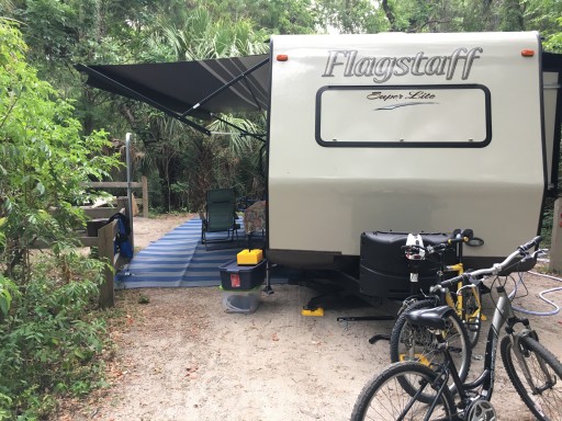 We were Looking for somewhere just for the night. Read all the reviews and I’d have to agree with all of them. We stayed in campsite #6. Tucked away and had to maneuver quite a bit to get our 28’TT between the trees. Small rustic campground, not much to do. We brought our kayaks paddle around in the morning then seen another review about Mount Dora so we spent the afternoon there checking out the cute downtown area. Highway noise not very pleasant but nothing the park can do about that. We liked the privacy between each site