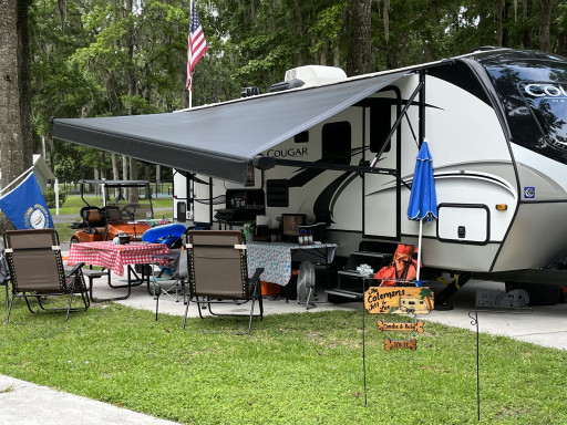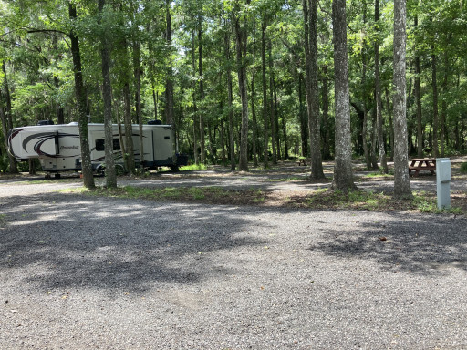 The property is approximately 5 acres mostly wooded with plenty of shade. Most sites are near the water