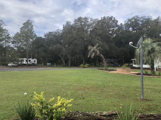 We too received a warm welcome (thank you) from Gainesville Bass Pro. The employees lot to the left and rear of the store has plenty of room and a large grassy area by the pond for dog walkers. Beware of Alligator signs posted so keep them a leash.