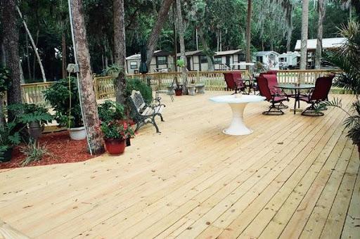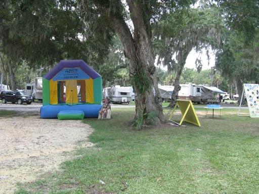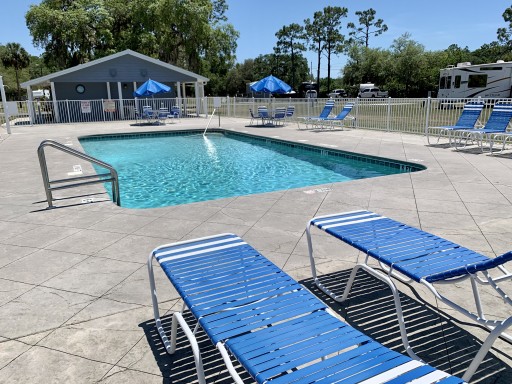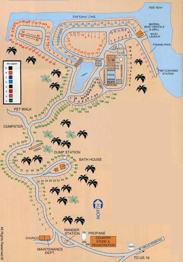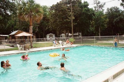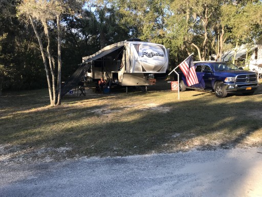 This campground is beautiful. It is surrounded by trees providing natural shade and right on the river. There is a small pond and fountain scenario with a large firepit near the clubhouse. The bathrooms and showers were always clean! Majority of the trailers there were permanent residents or "snow birds" Everyone had a golf cart and knew eachothers names. The staff was friendly and helpful while most of the residents kept to themselves. It is in a good location if you are visiting the springs! There is a publix right down the road. My only complaint was our neighbors. EVERY Night they would SCREAM at eachother for hours. It was comical the first night but grew to be very frustrating. If you camp here stay far away from site 120!