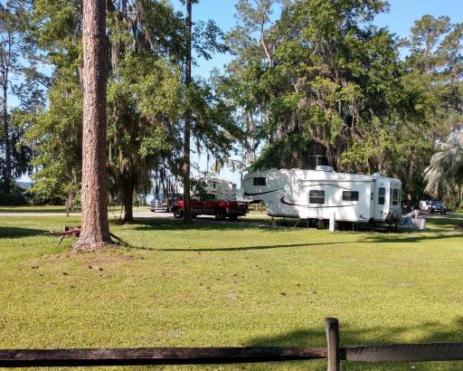 We were lucky to get a primitive spot and stayed 3 days. No electric sites opened up during our stay. Gossip is that hosts and rangers are allowing folks to stay indefinately by not checking on stay length. Very dark at night and very quiet. Primitive sites have palmettos around them and are in thick trees making them very private. $4 for the night with access pass.