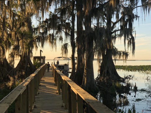 If you have a small camper this lakefront spot is the place to watch amazing sunsets and disconnect at about $35 a night. Great, tall mossy cypresses along the shoreline create memorable scenery. 25 ft dock extends into the lake to do a little fishing and watch the spectacular sunsets. We saw alligators, a snake, Sanhill cranes, raccoons tracks, spring turkey, a pet wild boar, cattle and a ton of other Florida birds. Truly magical place!
