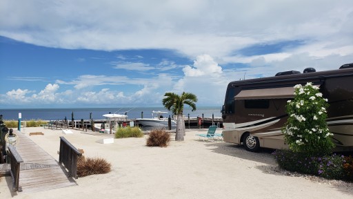This place was exactly what I was looking for with taking the family to the keys on a camper. Beautiful view waterside. Goods: walking distance to the dolphin research center, friendly staff and had a pool. We took a native taxi to sombrero Beach. Awesome beach. It had a small boat dock and a fishing site. Bads: cable and wifi were not good. No private beach for swimming, very small campground. Booked it at last minute, they had a cancellation. Staff was very accommodating. They gave me a courtesy call two days before and the day of my arrival. Kiddos loved it.