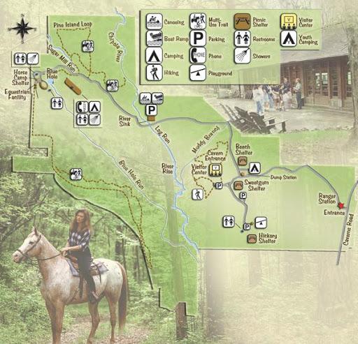 We had a good parking site with a view of the deer in the morning. The blue hole spring is nearby. The cavern entrance is a bit further and tours are available. Lots of new trees have been planted to replace those lost in a storm. Very nice bathrooms.