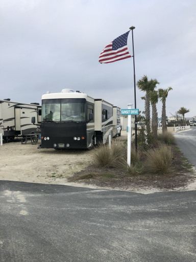 First time staying here. Campground is very clean. Sites are easy to get to. A little close. Areas designated for pets. Showers, rest rooms and laundry room were extremely clean. Staff were very friendly and helpful. Rules on pets are strict. Grilling area and fire pit. Is across Hwy 98 from El Governor Hotel and the beach. Great location for price. We’ll be back. Area still recovering from Hurricane but we still spent time on beach.