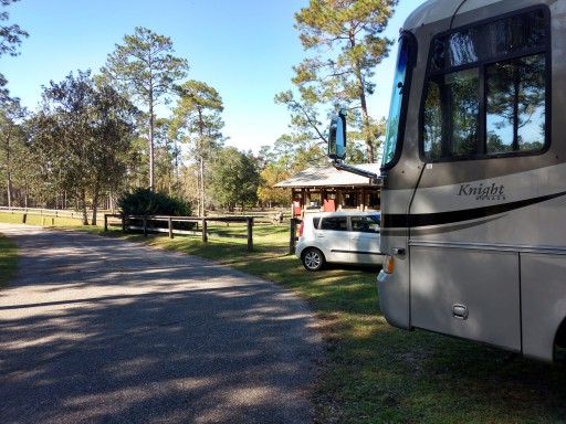 This and other campgrounds in the Blackwater River State Forest are NOT US Forest Service owned or operated so the federal 50% discount passes are not accepted. Active, retired or honorably discharged veterans and those over 65 regardless of residency get a $10 discount from the $25 camp fee for a site with 50/30/20 amps and water. There is no fee per vehicle. The dump station is a 2 holer with non-potable water.