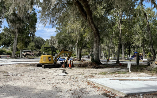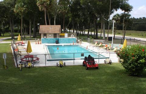 We stayed here for a beach weekend. Very friendly staff, clean park. Our trailer 33 ft long with a slide out, concrete slabs. We travel with our army of kids, so playground was adequate, pool was clean. 20 minute drive to the beach was great,went to National Seashore beach,loved it. Great place to watch a shuttle launch.