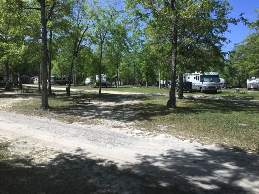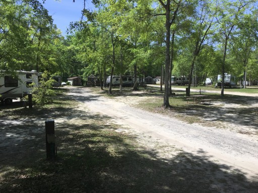 We liked this little park. Quiet, with friendly staff. Squirrels to keep the dogs occupied-as in window staring. $38.00 a night. About 30 miles east of Tallahassee. Large pull throughs.
