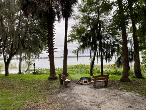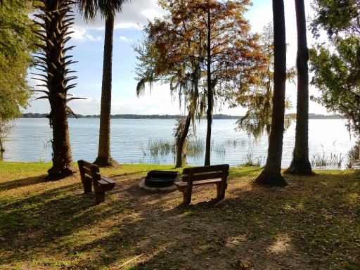 Just finished a great week at Trimble Park in Mount Dora, Fla. For a glimpse of the original Florida, huge oaks, spanish moss & plenty of wildlife this is a good one. A quaint quiet park with only 15 sites, most on the water, benches, gliders & swings along the trails. Electric & water at each site, no sewer but there is a dump station. Our 40ft had no problem fitting. For a very natural park they do a great job of keeping it picked up.