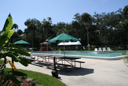 I really like this campground. Very lush. Tons of trees. Heated pool, dog park area, kids playground with several swings and slides. We hiked to the lake. About a mile round trip. Only saw one other person in a golf cart. You feel like you’re way out in the woods( they have 100 acres) but Publix is right around the corner. Camp store is very well stocked and affordable. It did pour rain last night but drained away quickly. I didn’t give it 5 stars because WiFi is slow and our site had no table. The closer to office WiFi is faster.