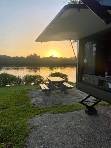 We came down for Daytona Bike Week but didn't want to stay in the middle of the hustle and bustle. We chose wisely. This is a great family-owned, off-the-beaten path, gated campground nestled on the Indian River. Our site had a frontseat view of the water. Every morning and every night was an incredible view. Have you ever seen dolphins at play by the light of the dock at night, we now have. Dolphins, manatee, alligator, and waterfowl abound. The campground and facilities were well maintained. Shower houses and laundry available. The camp store had a huge variety of everything you might need and plenty of souvenirs you might not need. Alcohol, food, snacks, bait, tshirts, etc. etc. A great Tiki deck for boat watching with many boats of all sizes to admire...busy place. The sites were close together but our neighbors were fulltimers who were friendly and welcoming with a wealth of local info. The staff were genuinely happy to greet us each day. Thanks for an amazing adventure.