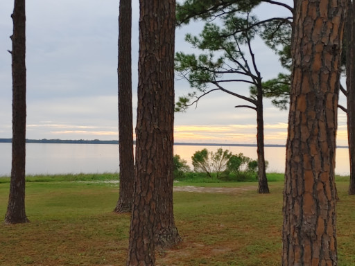 The waterfront sites of this park have stunning sunsets. Staying at #16 was a perfect space in the middle of the waterfront. The backyard more than made up for the tight sides. There is a lot of property between your rig and the water all for you to relax under the trees. The 4 ⭐'s are for the lack of site grills and tight sides. I would return.