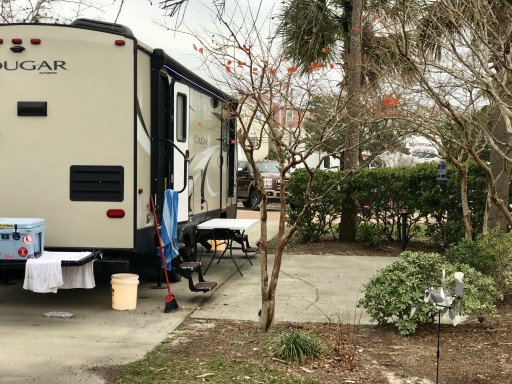 We stayed here for one night in Jan, 2022 in a Class C motorhome. Excellent location to a beautiful beach. Fairly tight spaces. Very expensive laundry and 2 of the 4 units were out of order. Place showing its age. Power outlets do not have covers on them, some titled, aged. The bathhouse was very poor. My partner would not use the ladies for a shower it was so bad. This was our 30th RV park and this is unfortunately all too common.