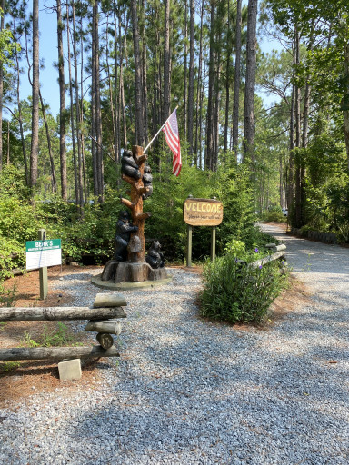 What a neat campground. Nestled in the pines so close to the beach and all the attractions. Nearby are stores for needed amenities. The sites are roomy and some are backed by the beautiful lakes. There are pull trough and back in sites, all are angled and easy to park in. Electric, water, sewer, and cable… all connections are positioned well on each site. The bath/showers are super clean. The pool is clean, spacious and screened in.