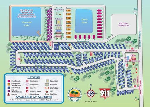 Spent three nights evacuating from hurricane Irma. Very nice park. The sites are close together, but nice vegetation between the sites makes that more bearable. The staff is super nice and helpful. Site was long enough for my tow without disconnecting. Utilities were well placed and worked well. Great cable with lots of clear channels. Wifi not so good. I would definitely stay again. We camped at Emerald Coast RV Beach Resort in a Motorhome.