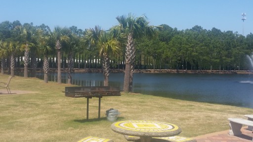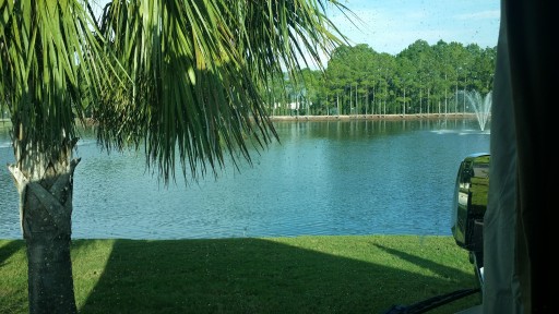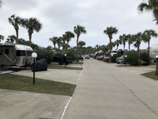 Site 38, level concrete pad, some palm trees and grass, looks great since hurricane, pools, small ponds (saw an RC boat zipping around one...cool), laundry, activities, nice bathrooms and showers, quiet, nice folks at resort and local area, close to the beach (short drive), close to great shopping (Pier Park, Seaside,...) and restaurants, pet friendly, nice resort will definitely return