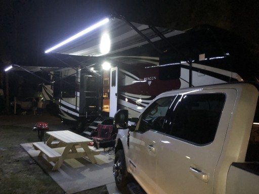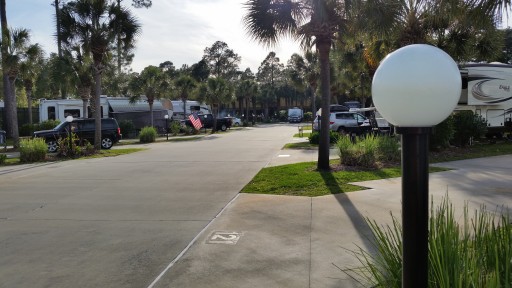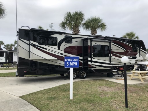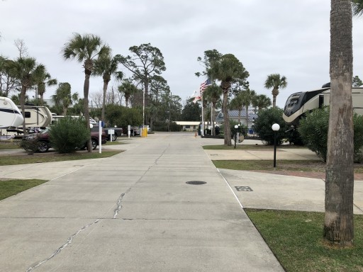 We had a very nice stay the month of March. The park is well kept and clean. You can see they have done a tremendous job cleaning up the park after Hurricane Michael. Level concrete slabs with plenty room for 40 foot rig and car. They pick up your garbage at your site everyday. We enjoyed some of the events. It is dog friendly. Only thing that bothered me was they don’t enforce the 5 mile speed limit. All vehicles zoomed by at 30+ MPH including staff golf carts & staff trucks.