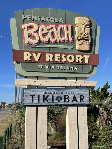 Great location and walking distance to many restaurants, the beach, and Pensacola Tram. The spots seem really tight and the park can get noisy with people at the pool but the Tiki Bar is a great bonus! We had to move spots part way through (not their fault we booked more days after getting here). The move was confusing as we received different information from two people and then a phone call with different from the third. However, most people will not have to deal with the move but it seems many people move around. Have stayed here a few times and love it overall!