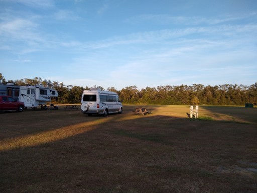 The good news is that there are FHUs and pull thru sites. Sorry but that's all the positives that I can say. Check in begins at the Marathon Gas Station. The older Asian women we checked in with is a total sour puss! Very limited hospitality.... Wait no... I mean NO hospitality. Not much around the area in the way of restaurants. It will do for a night and then back on the road. Ant mounds, no extra charge.