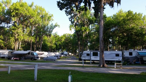 Country liveing under tall majestic oat trees. Older park with aged facilities, not an issue if you are self contained. Washers and dryers are new. Quiet at night although you can hear the hum of I75 in the background. Pool is nice and opened late.